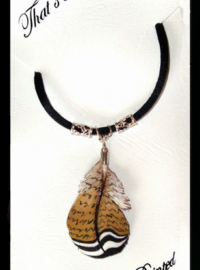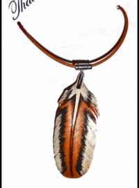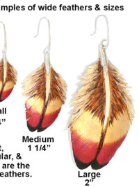 My feather earrings have hand made Sterling Silver quill caps and French hook ear wires made from Argentium Silver, specifically designed and made by Feather to create the sleek elegant appearance of each of these pieces of wearable art. Included in my line are: pins, barrettes, pendants, necklaces, tail fan necklaces and earrings, and hair ties. I also makes an adapter to convert the earrings from one feather to two feathers on each wire. I make a 10-inch leather feather with the quill traditionally wrapped, or the quill not wrapped for one to use in their own creations. I also have a style enhanced with rabbit fur, horse hair and prayer tie. My realistic leather feather, leather leaf jewelry, and specialty items are light weight and durable. An added benefit is they are light weight, saving on shipping cost which make them ideal for gifts which need to be mailed.Each of my pieces are signed with my logo-a small Golden Eagle Tail Feather.
